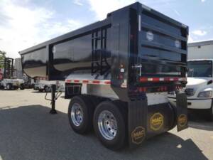 27’ body with 14/22 radius design, 58.25 side height including 3/8” shedder angles. Dual top hinge and Hi-Lift AR450 tailgate 3/16 AR450 floor with .250” last 8 feet. Aluminum frame with Heavy duty ½” coupler Rear aluminum fenders, front and rear ladders. Slope nose design for superior clean out. Intraax 300 air ride suspension with HLX5 Hendrickson wheel ends. Polished aluminum wheels, 11R24.5 General RA 16 ply tires. Aero Industries electric flip tarp system.
